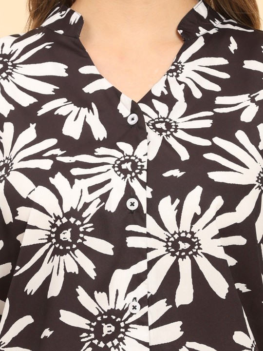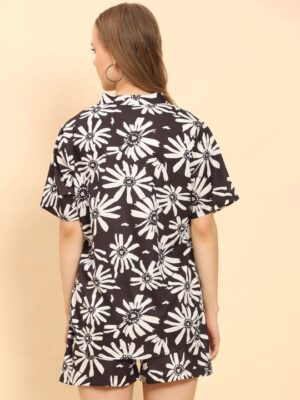 Upgrade your bedtime style with this chic and comfortable night suit featuring a bold black-and-white daisy print. Designed with a soft, breathable fabric, this coord set includes a stylish button-down shirt paired with matching shorts for a relaxed and cozy fit. Perfect for nightwear or casual home lounging.